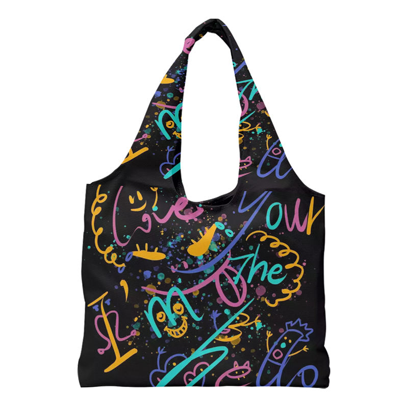 창의적인 텍스트 그래피티 맞춤형 전면 인쇄 면 캔버스 가방