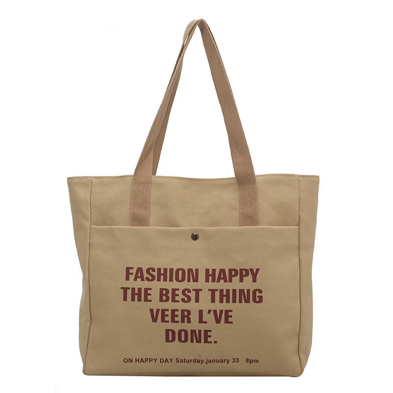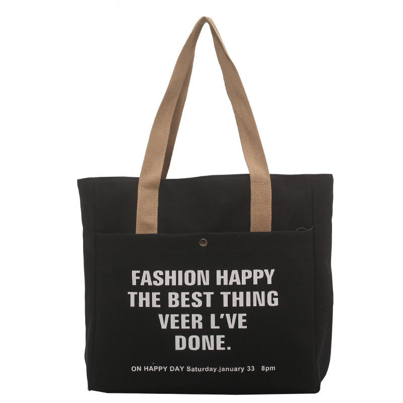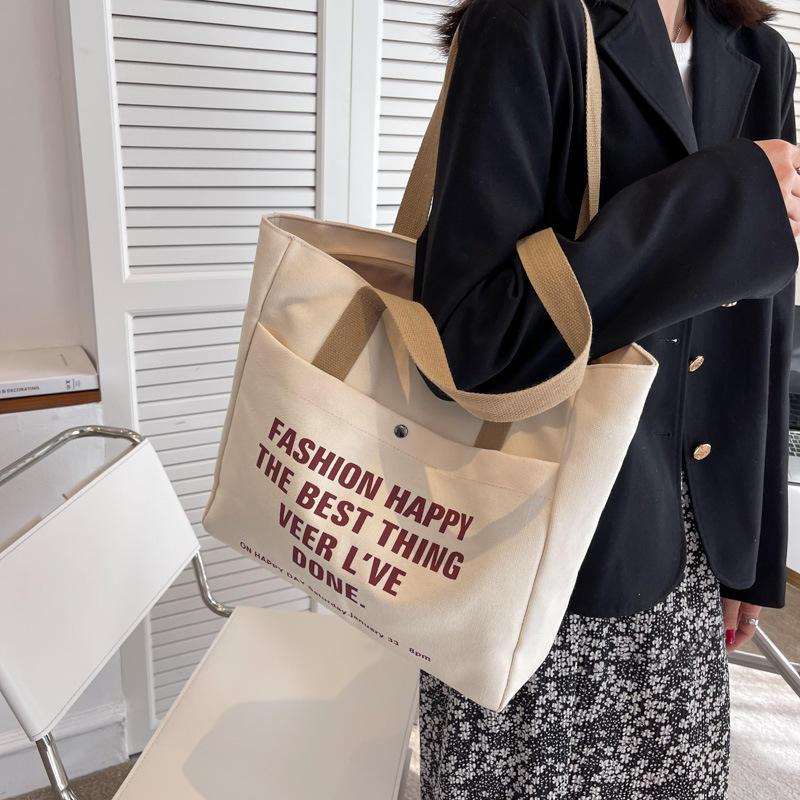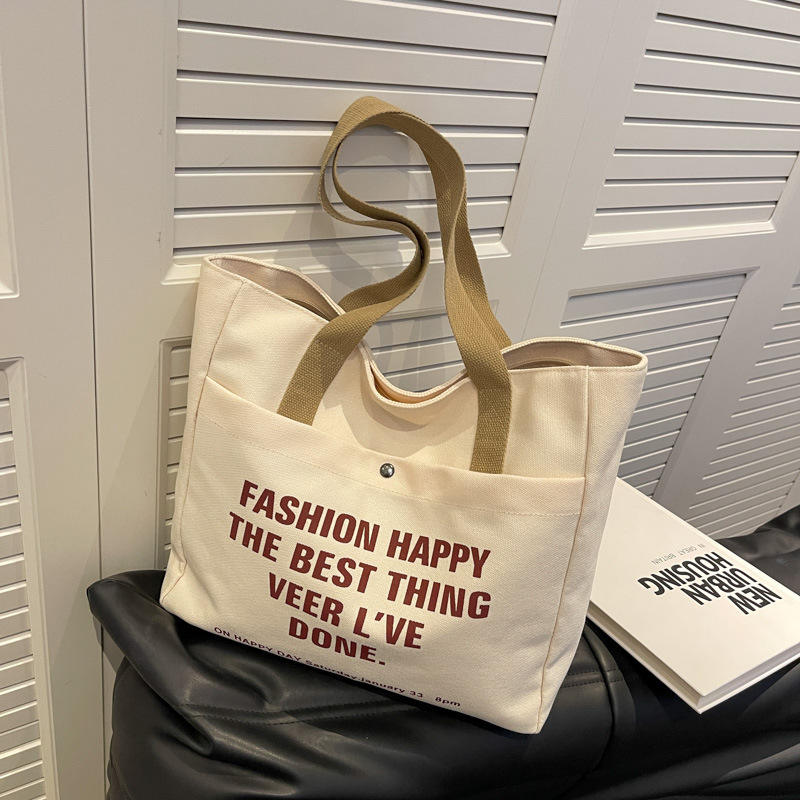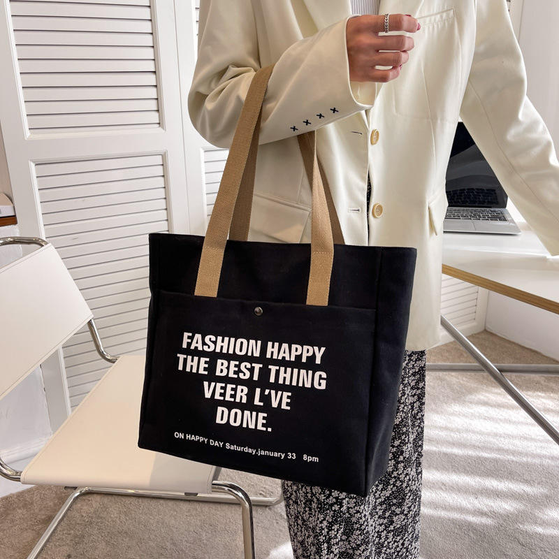 주머니와 지퍼가 있는 패션 레터 프린트 캔버스 토트백