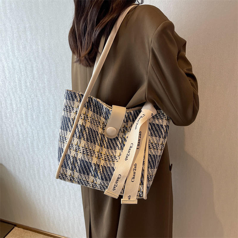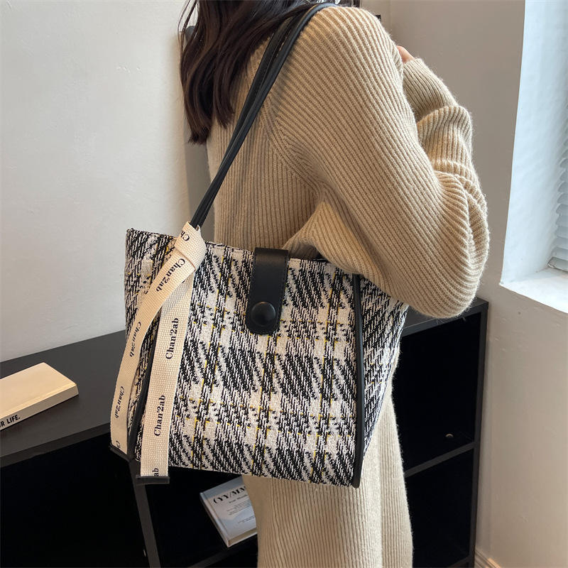 제품 한국 스타일 대형 격자무늬 캔버스 토트 쇼핑백