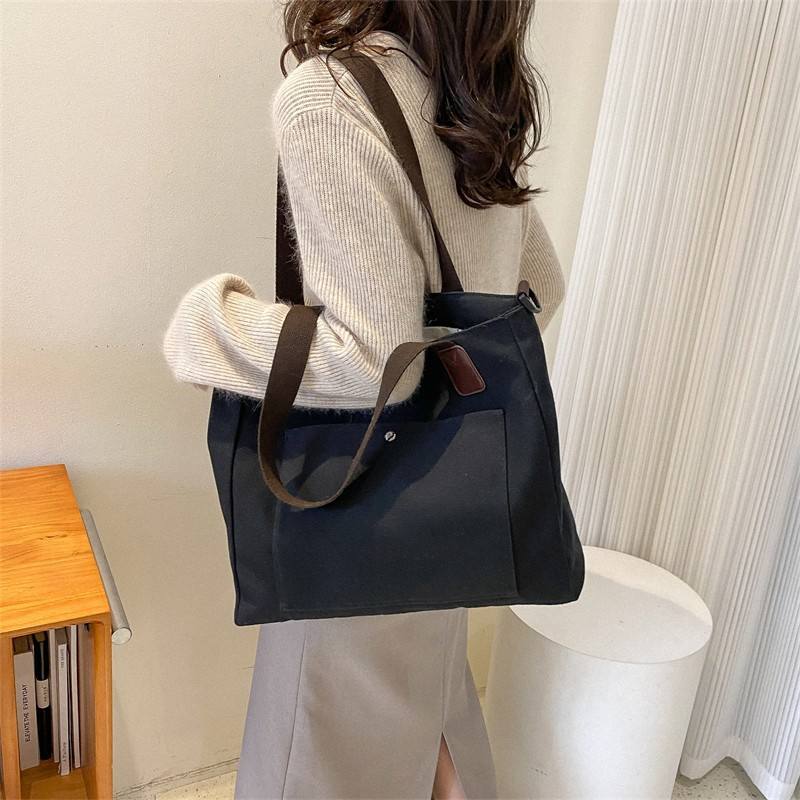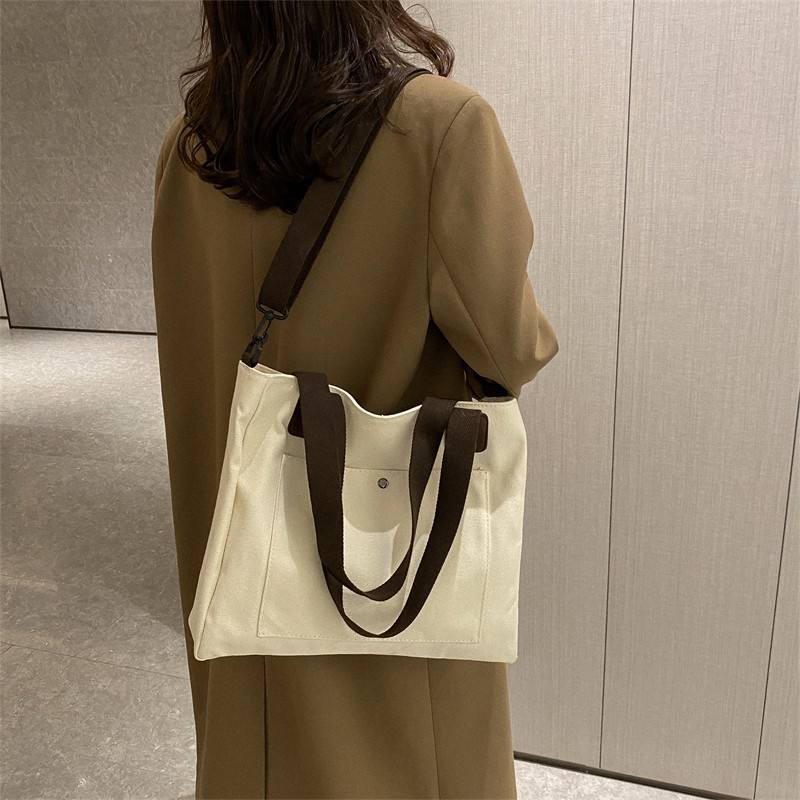 대용량 맞춤 로고 싱글 숄더 크로스바디 백 순색 심플 캔버스 백