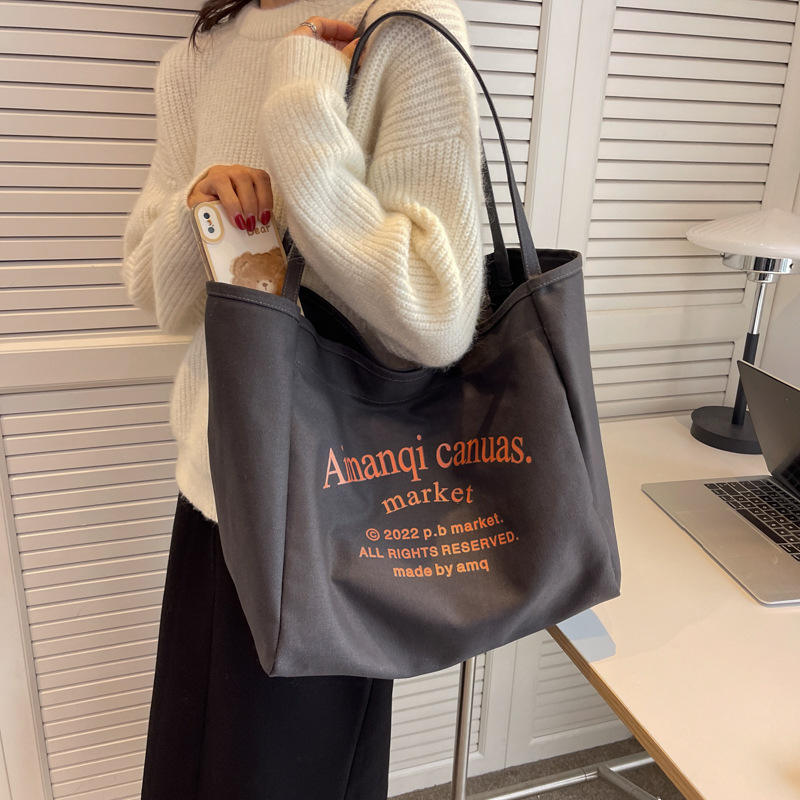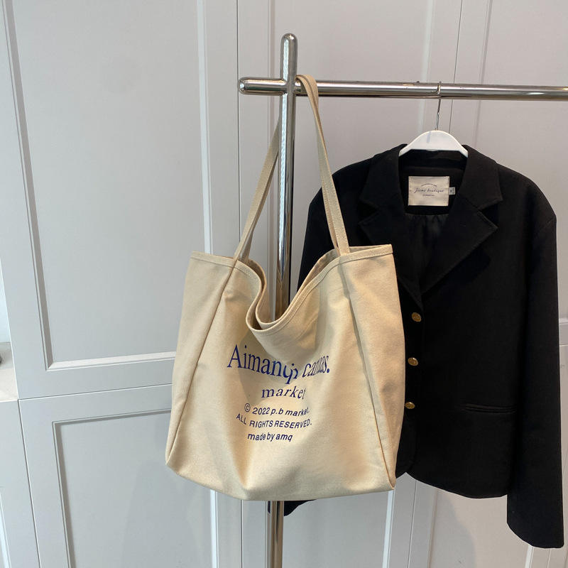 제품 홍보용 맞춤 로고 면 프린트 캔버스 토트 쇼핑백