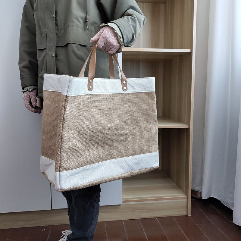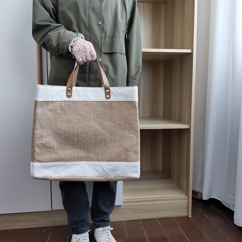 제품 스팟 문학 레저 스티칭 황마 토트백 도매